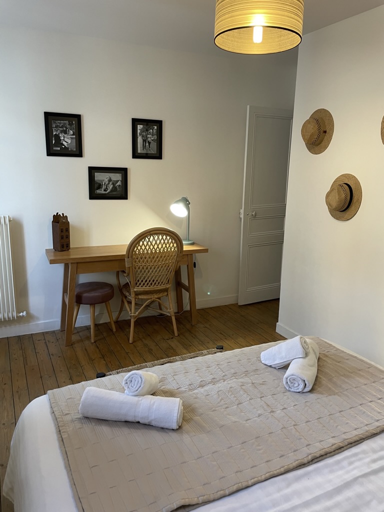 D’une superficie de 42 m², il offre un cadre contemporain et lumineux, parfait pour un séjour à deux ou en famille, au cœur du quartier Bon Secours — calme et proche de tout.