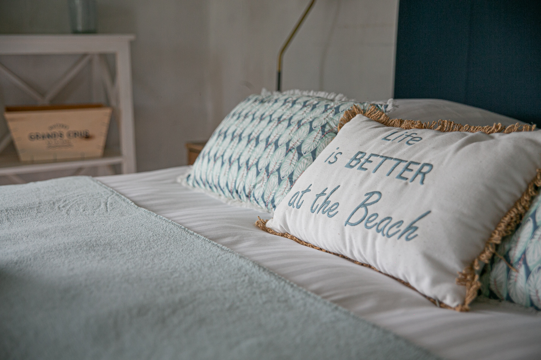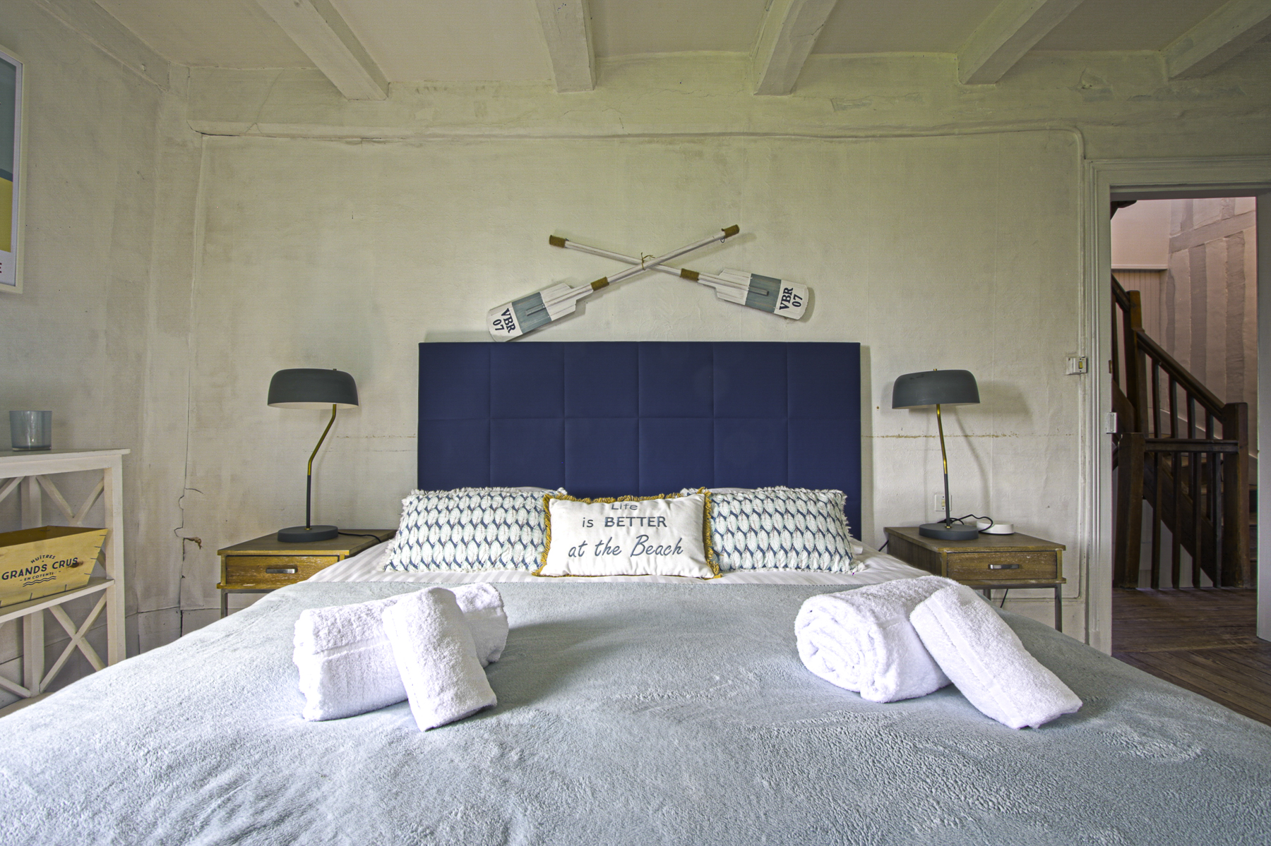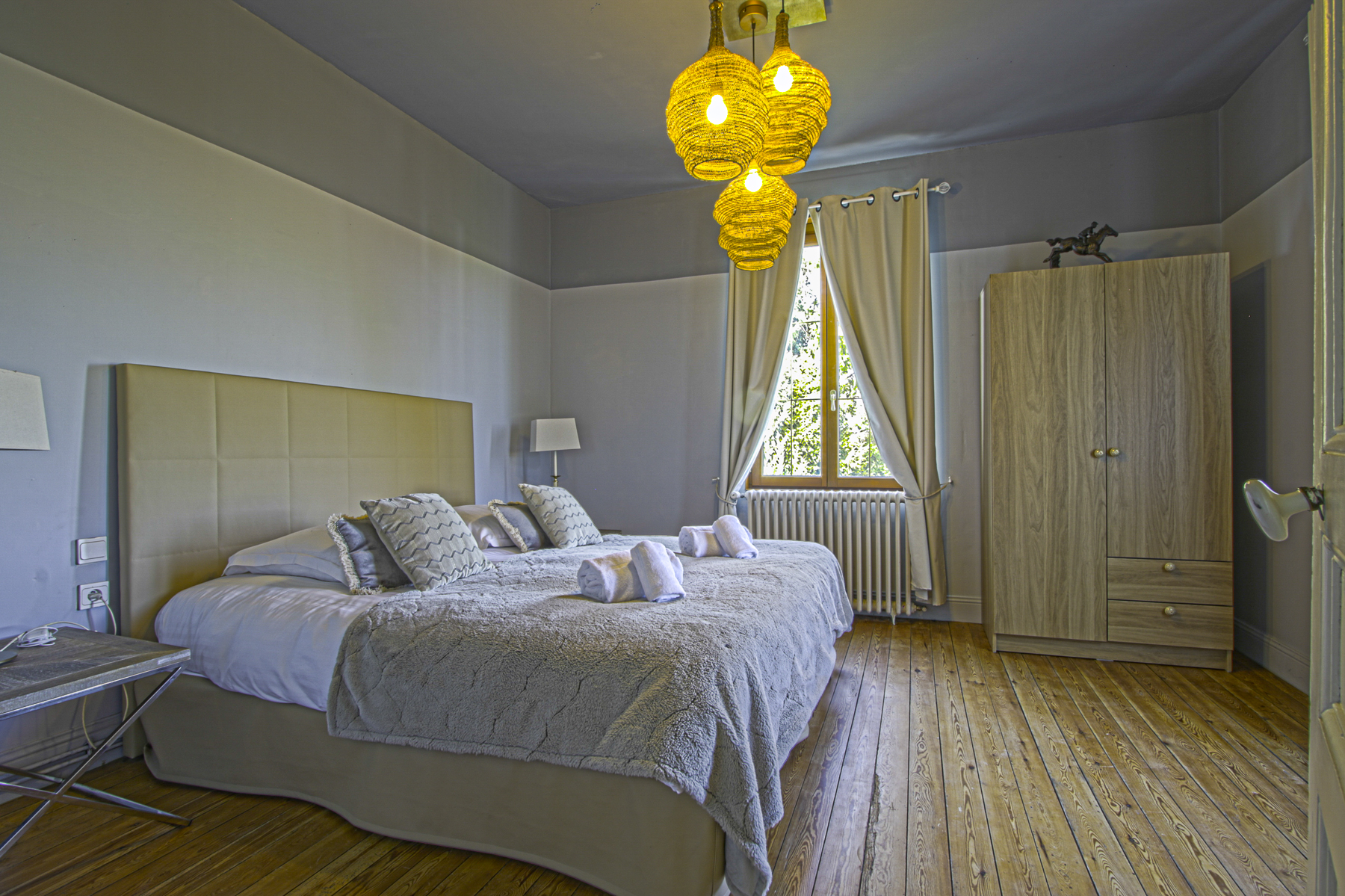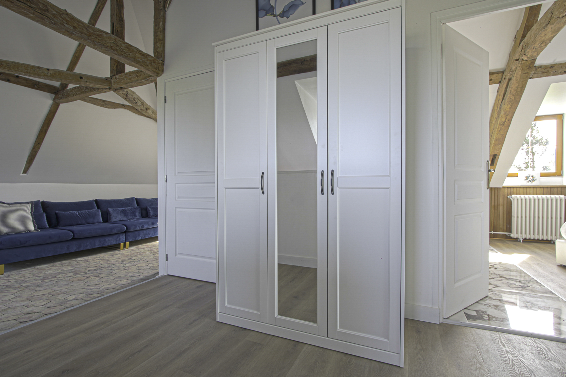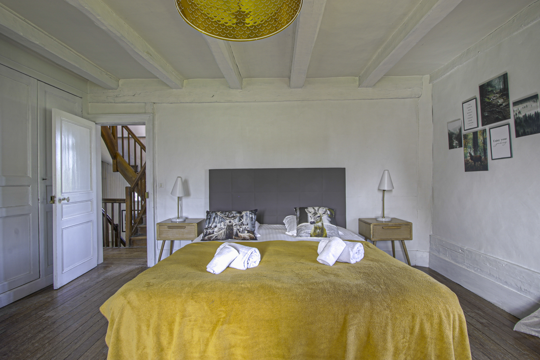 Trois grandes chambres confortables, chacune équipée d’un lit double 160 × 200 et de rangements.