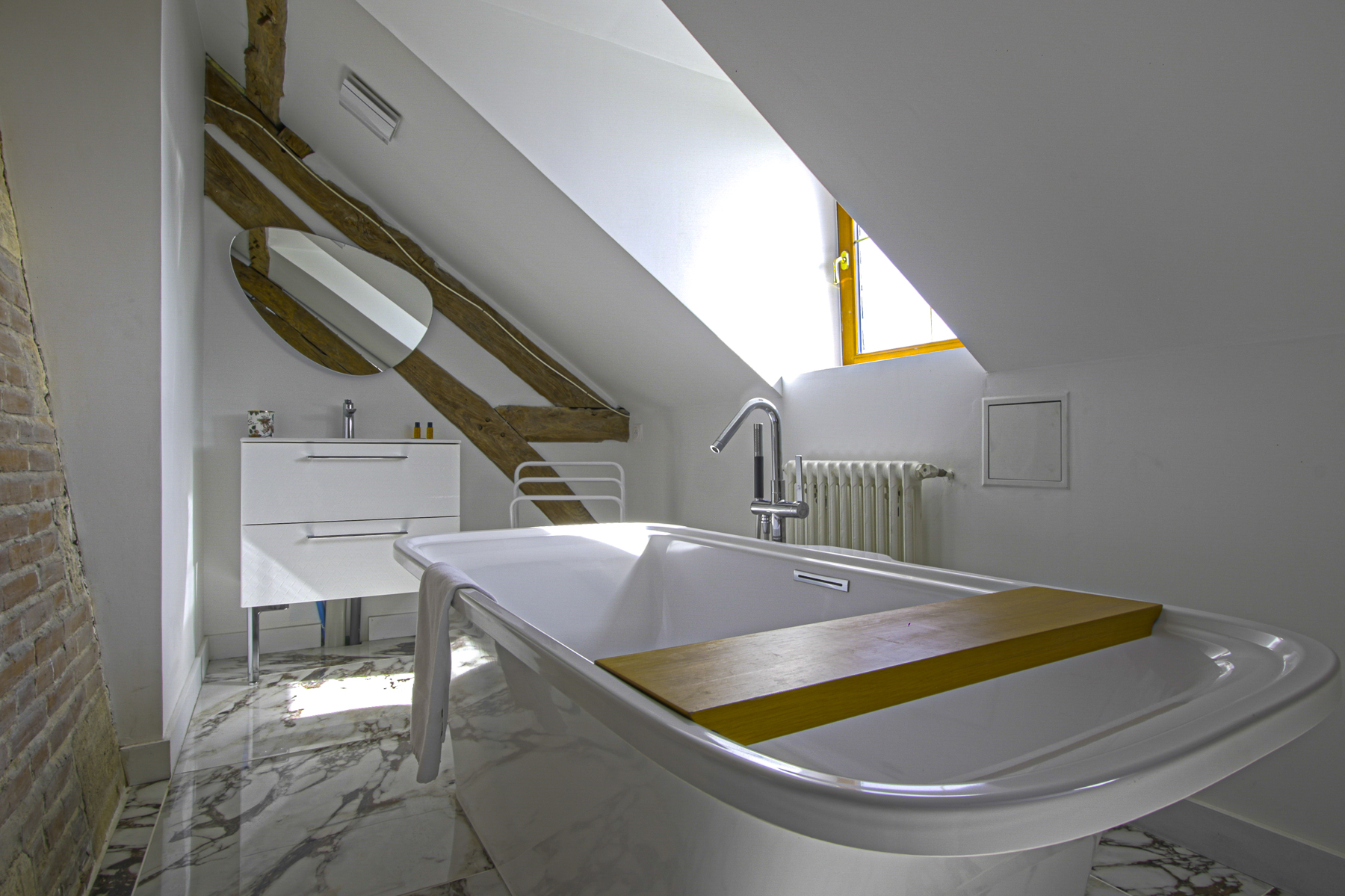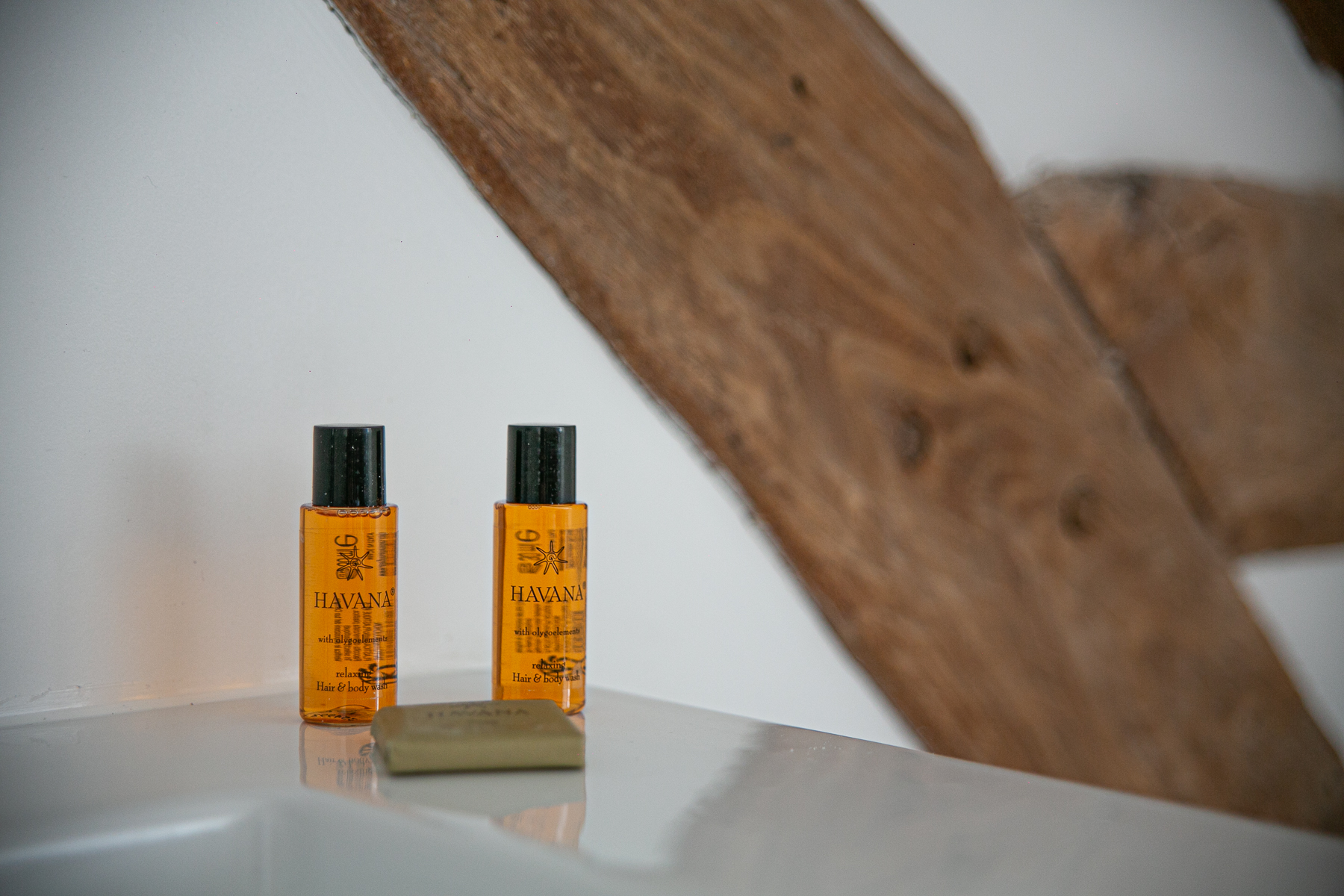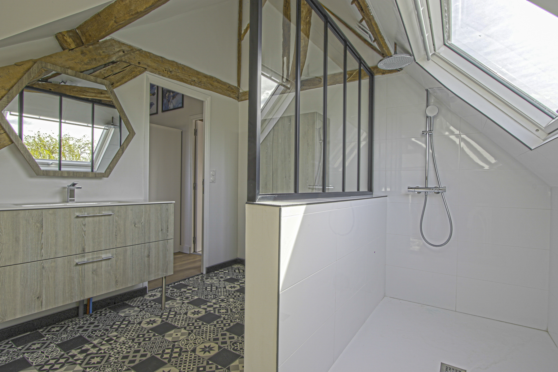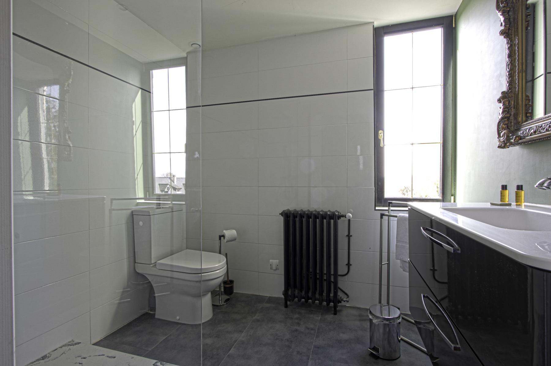 Deux grandes chambres avec lits 160 × 200, chacune disposant de sa salle de bain attenante (l’une avec douche, l’autre avec baignoire).