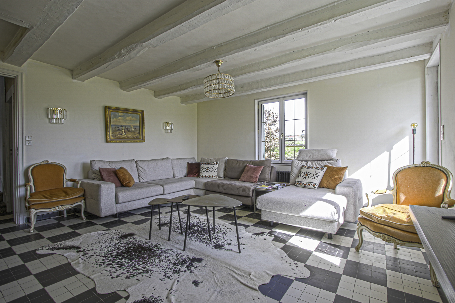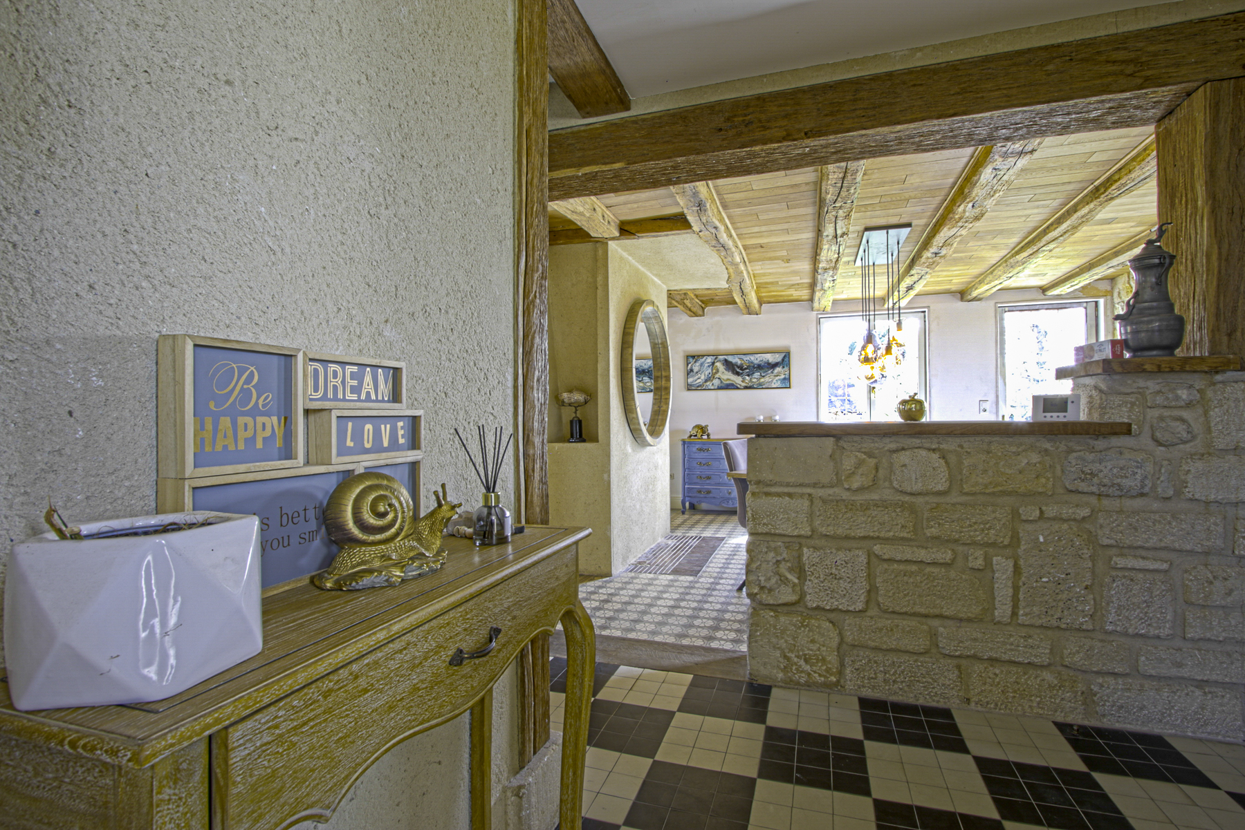 La maison est située en bord de route, cependant les doubles vitrages assurent une excellente isolation phonique, garantissant calme et tranquillité à l’intérieur.