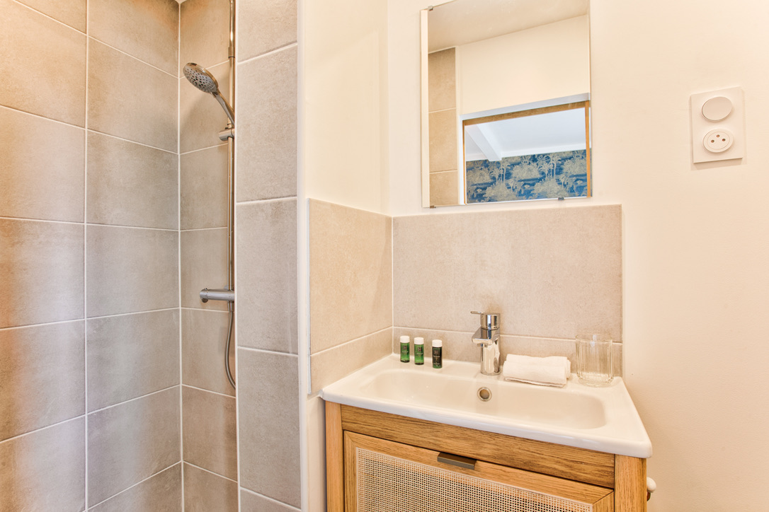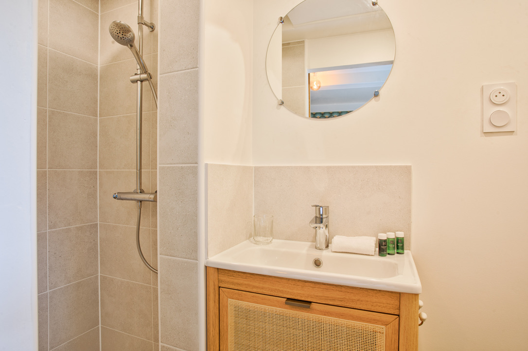 • Salle de bain avec douche + WC.