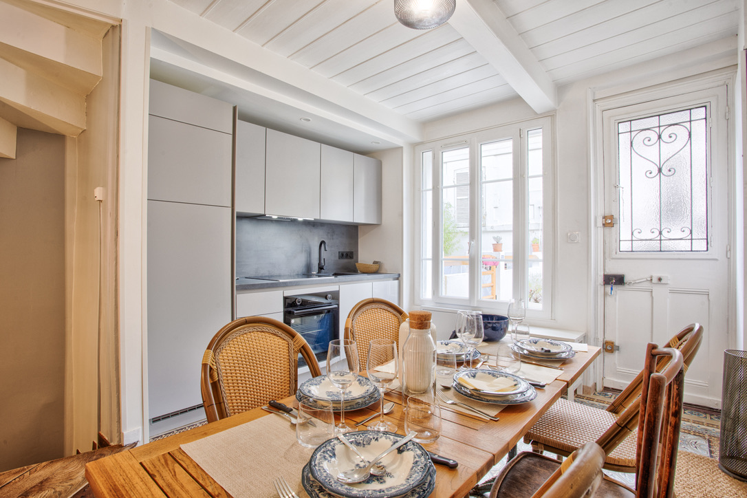 Vous pouvez profiter de la cour partagée et même sortir les tables pour vos repas.