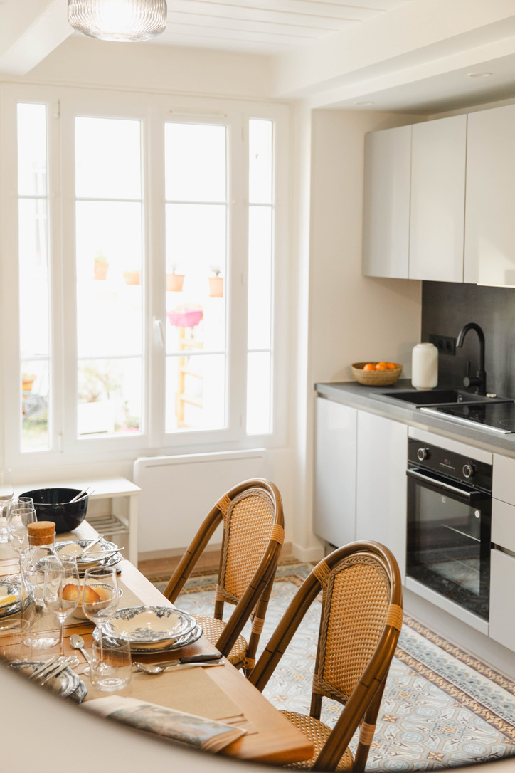 • Salle à manger avec table bistrot pour partager repas et moments conviviaux.