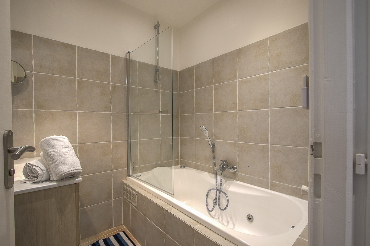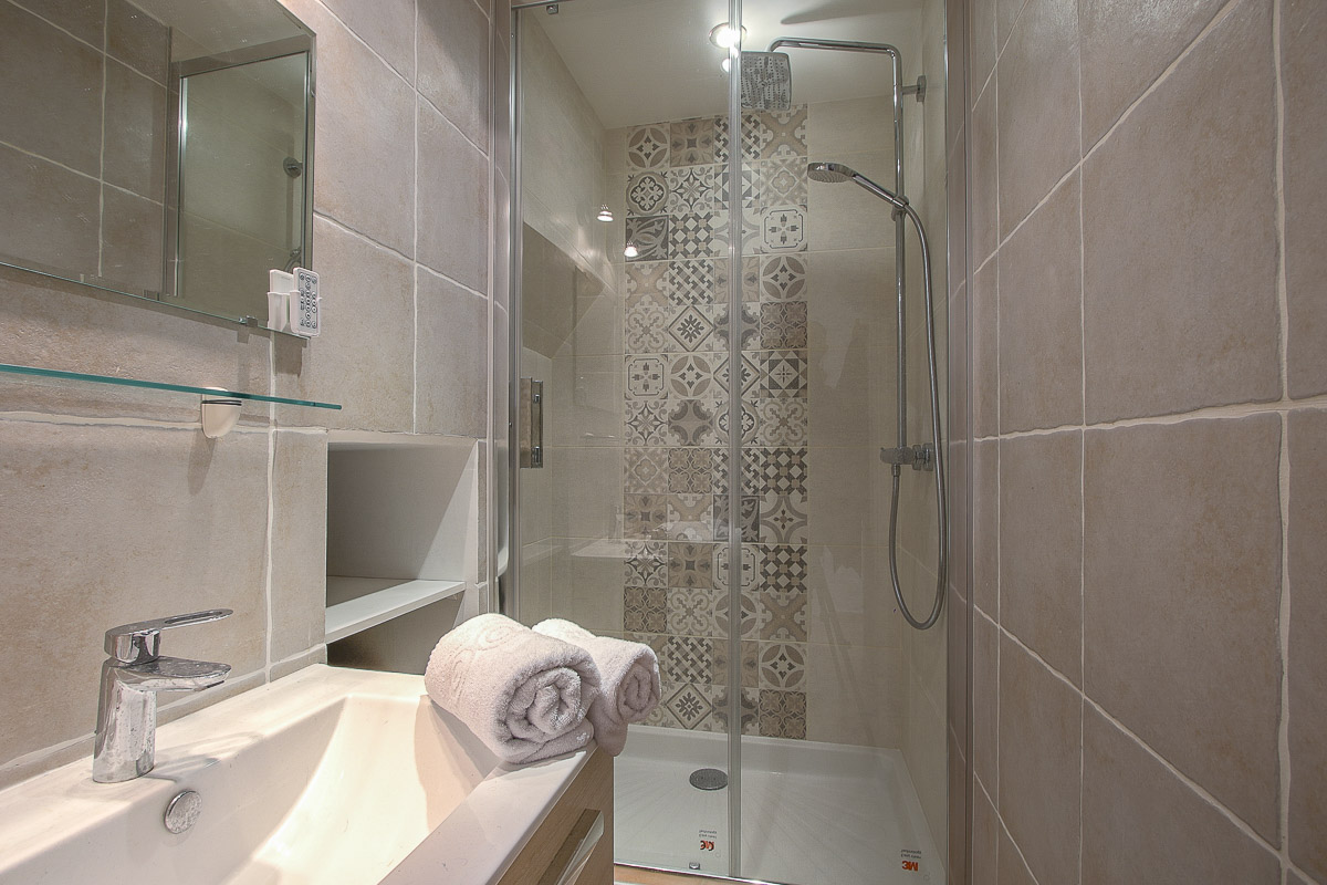 • Une salle de bain avec douche.