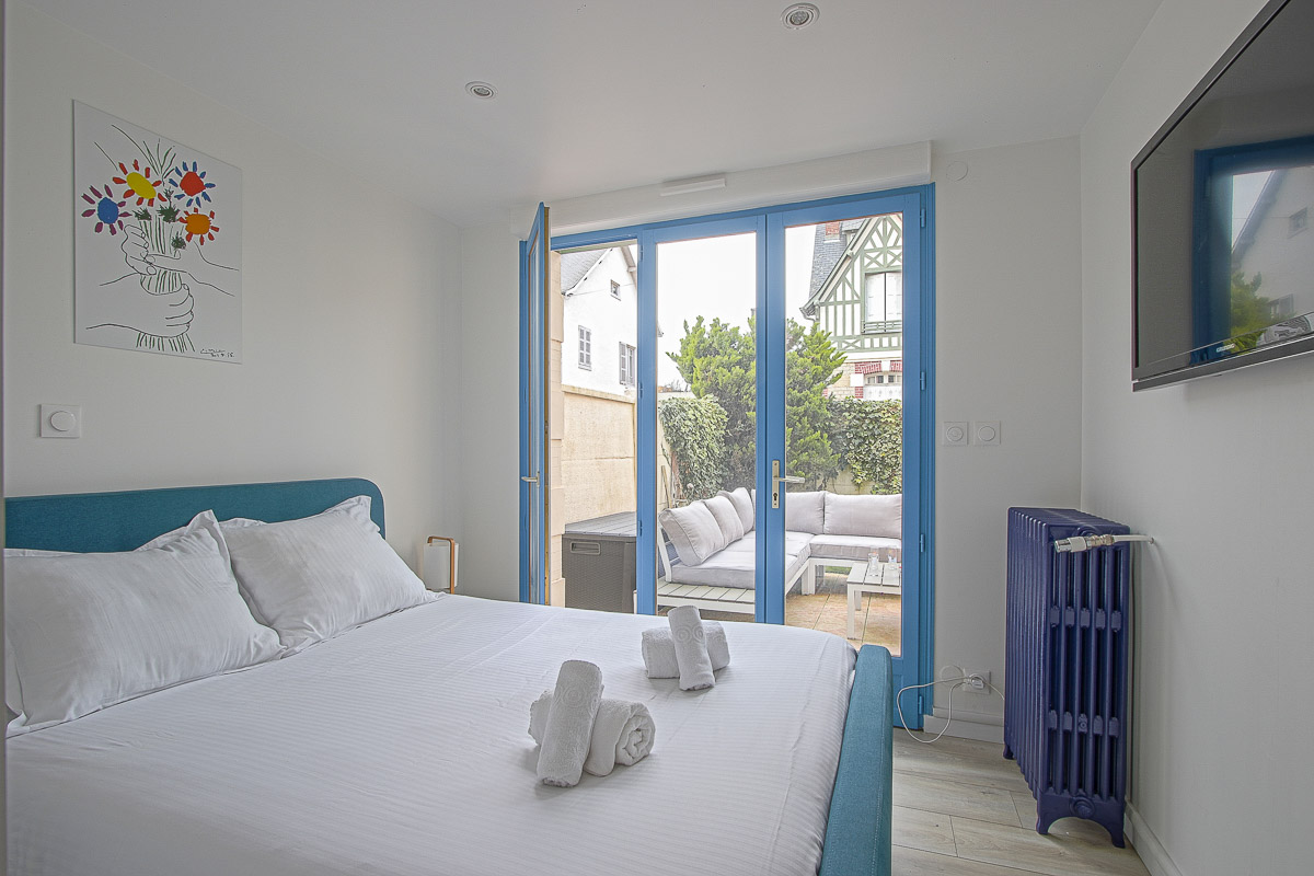 • Une chambre lumineuse donnant accès à la terrasse avec lit double.