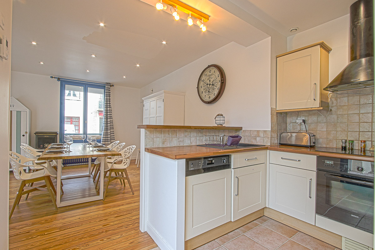 • Une cuisine entièrement équipée (réfrigérateur, four, micro-ondes, plaque de cuisson, bouilloire, toaster, machine à laver, ustensiles).